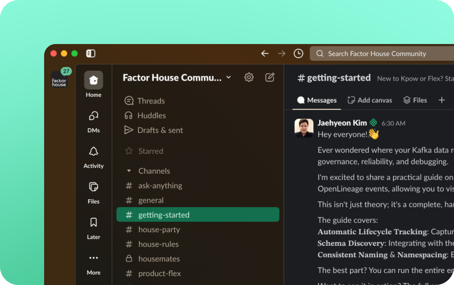 Factor House is powered by a global community of engineers. Whether you're starting your Kafka journey, building in Flink, or scaling real-time systems, there's a place here for you to contribute, collaborate, and grow.