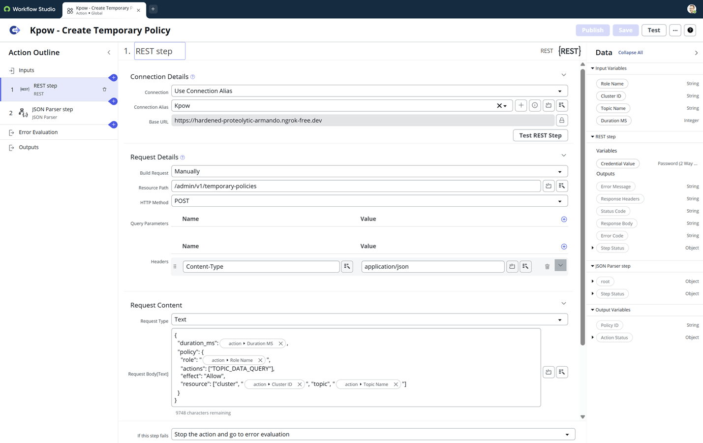 Step 3: Kpow - Create Temporary Policy
