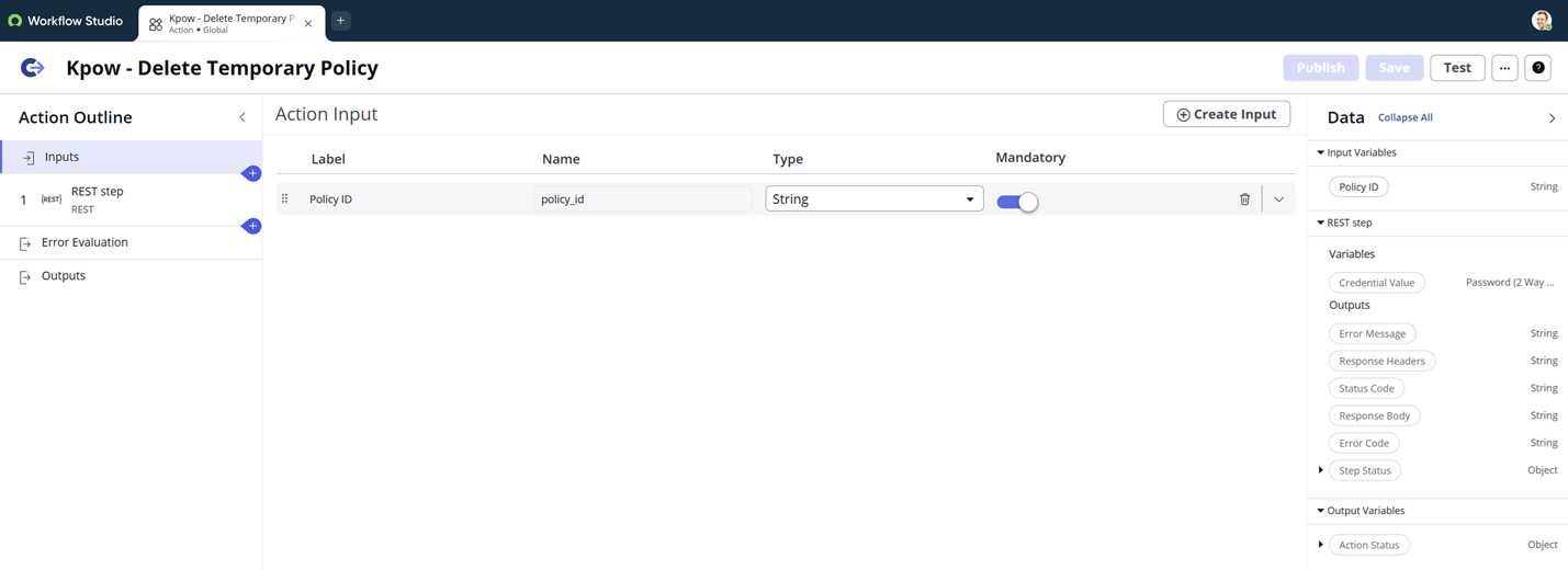 {policy_id}variable in the path to the Policy ID input defined in the first step.