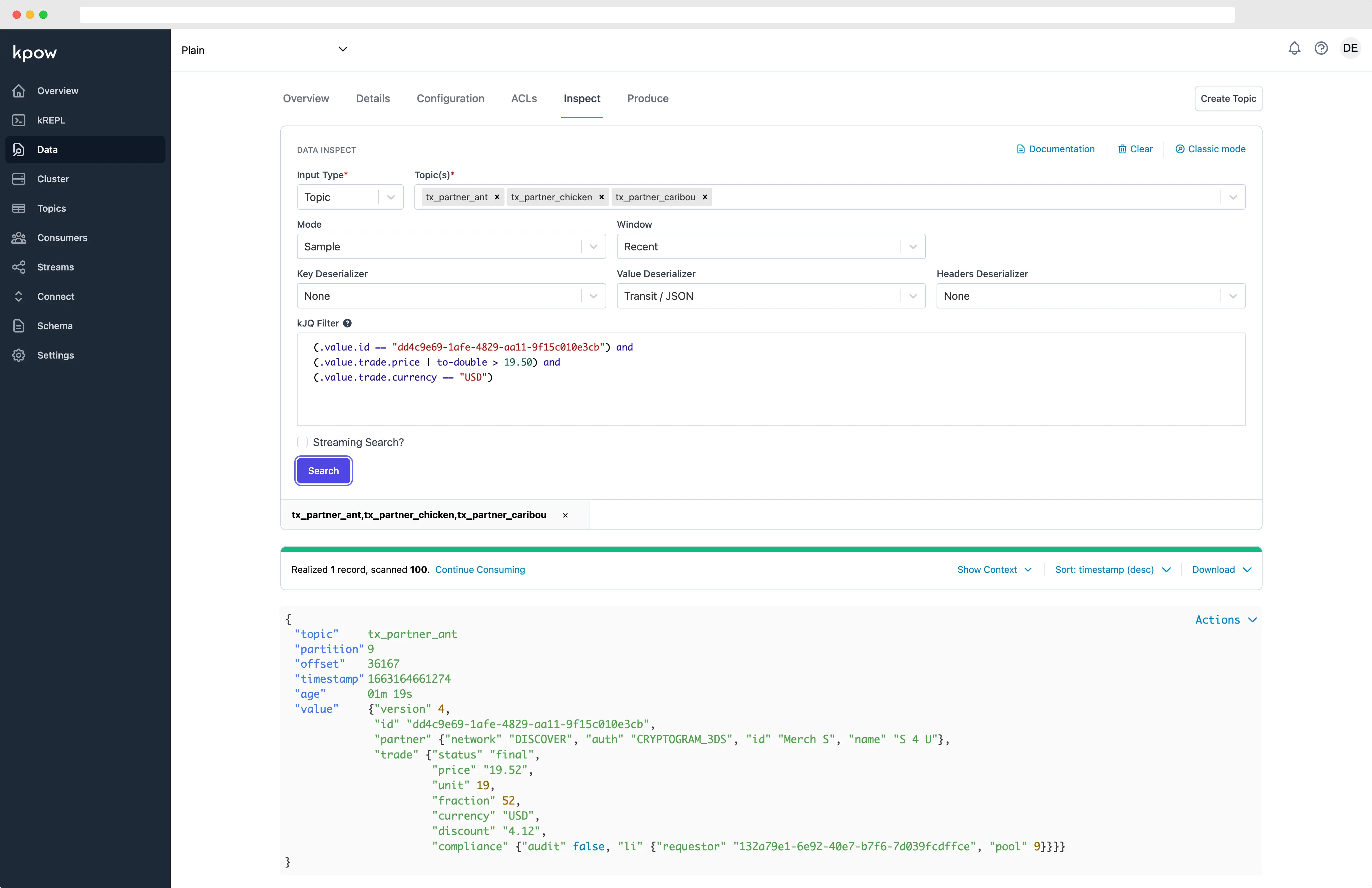 Kpow introduces the ability to apply kJQ queries to message headers, allowing you to search tens of thousands of messages a second and match by header.