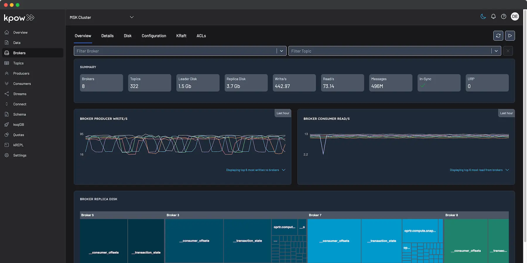 Kpow v91.1 provides deeper insight into broker disk usage, all the way down to a directory level. Simply navigate to Brokers > Disk.